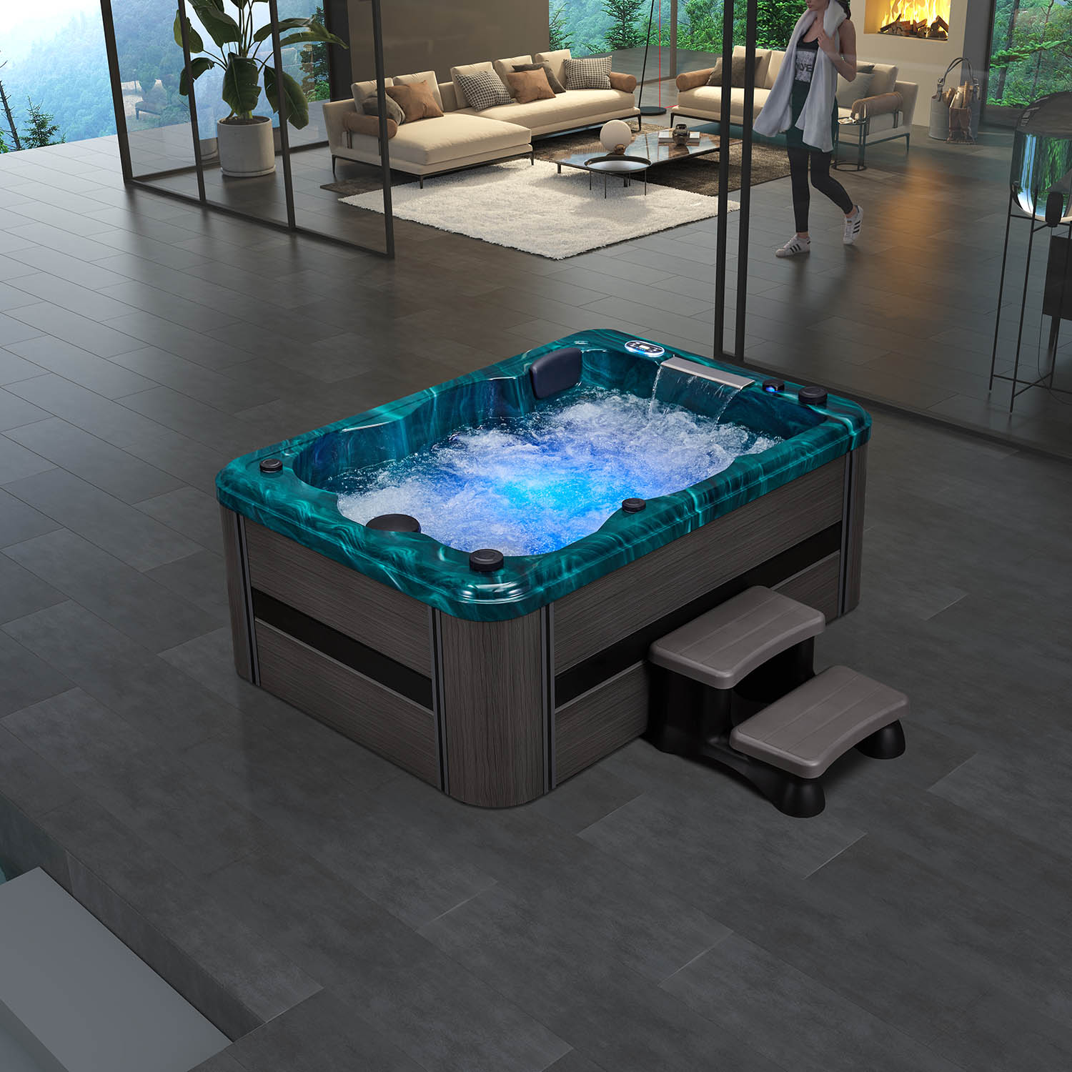 Высококачественная и модная система управления Joyonway, она имеет 3 режима: Стандартный, экономичный, спящий. Простая обшивка из алюминиевого пластика с приятными линиями. В спа бассейне серии H используется двухскоростной водяной насос с высокоскоростным режимом и низкоскоростным режимом, который подходит для взрослых и детей, удобен и безопасен. Он оснащен нагревателем мощностью 3 кВт, его можно нагреть до соответствующей температуры при использовании зимой. СПА Бассейн этой серии оснащен фильтром и озонатором, который может поддерживать чистоту и безопасность воды.